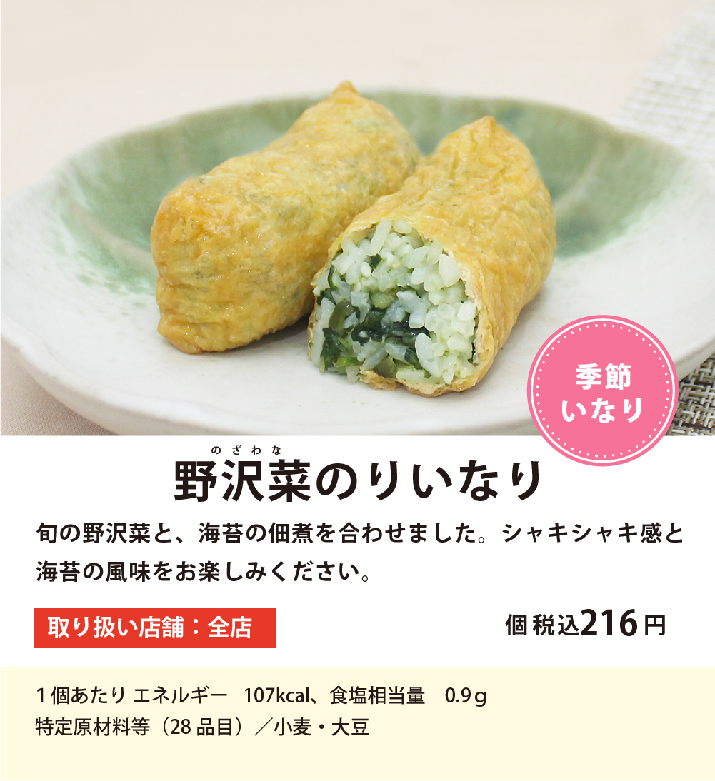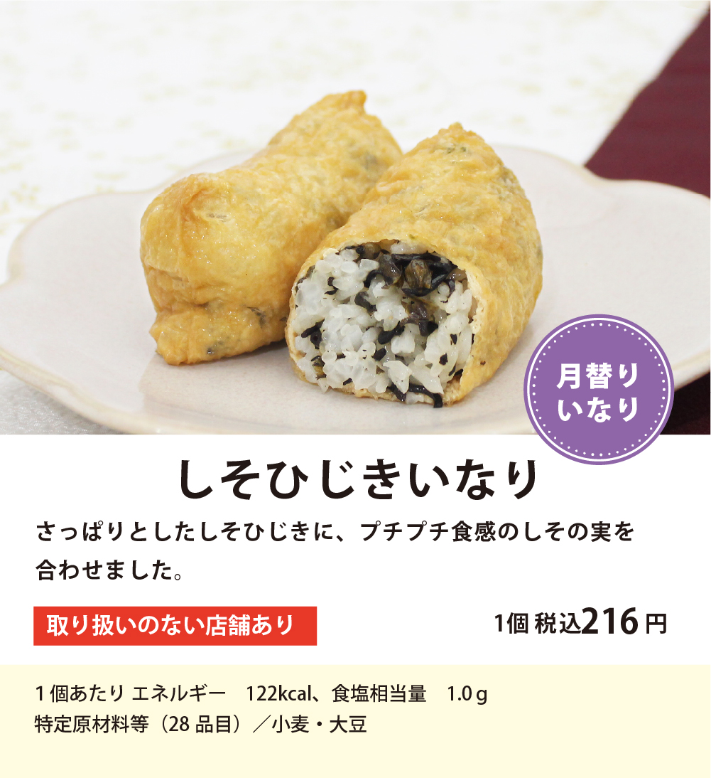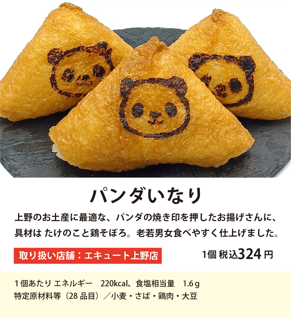 いなりすし専門店 豆狸 ひとつひとつ丁寧に「手」でつつみこむ それが豆狸のこだわりです 商品一覧 ※品切れや、取り扱いの有無が変更になる場合がございます 期間限定いなり しそひじきいなり さっぱりとしたしそひじきに、プチプチ食感のしその実を合わせました。 野沢菜いなり 旬の野沢菜と、海苔の佃煮を合わせました。シャキシャキ感と海苔の風味をお楽しみください。 豆狸 店舗一覧 >> 定番いなり 豆狸いなり 香り高い金胡麻に、椎茸、干瓢。ふっくら甘いお揚げで包みました。豆狸の代表商品です。 わさびいなり 上品な辛味のある花わさびと、お揚げのまろやかな甘みが良く合います。 生姜いなり 具材には「にんべん」自慢のかつお枯節だしで炊き上げた国産生姜煮、お揚げには国産生姜の果汁をお出汁につかいました。 五目いなり 歯ざわりの良いたけのこやれんこん、ごぼう、ひじきなど、たっぷりの具材を包みました。 黒豆狸いなり 国産の黒糖を使用し炊き上げたお揚げのコクが、味わい深い仕上がりです。 たこチビいなり たこ煮と紅生姜を、小ぶりでやわらかなお揚げで包みました。 くるみ味噌いなり 毎月17日いなりの日限定。くるみを、味噌とみりんで味つけし、 胡麻と合わせました。 程よい甘さと味噌の風味が絶品です。 こんにゃくいなり 毎月20日から26日限定。柚子入りの酢飯を、こんにゃくで包みました。ぷるっと爽やかな味わいです。 豆狸 店舗一覧 >> 店舗限定いなり 山わさびいなり くるみ味噌といなりと、こんにゃくいなりのみ、リード文に日にち足しました。北海道産の山わさびを使用しました。山わさびとちりめん山椒がアクセントになり、さわやかな辛さに仕上げました。 仙台味噌いなり みそ漬処「香の蔵」の仙台味噌で漬け込んだ胡瓜を合わせました。仙台味噌の豊かなコクが広がります。 鷹の爪大根煮いなり さっぱりとした大根漬けと鷹の爪を混ぜ合わせたおいなりさんに仕上げました。 穴子いなり たっぷりの穴子に、アクセントの柚子、椎茸、金ごま。お揚げは東京駅を思い浮かべるレンガ柄で 仕上げました。 まぐろ時雨煮いなり こだわりの釜炊き製法で炊き上げた「にんべん」まぐろそぼろふりかけと、まぐろの時雨煮を、赤レンガ柄のお揚げに包みました。 あさりいなり 旨みたっぷりのあさりの時雨煮に、枝豆、塩昆布をバランスよく合わせました。 パンダいなり 上野のお土産に最適な、パンダの焼き印を押したお揚げさんに、具材はたけのこと鶏そぼろ。老若男女食べやすく仕上げました。 ナポリタン風いなり 酢飯にトマトソース、コーン・パプリカを混ぜ合わせ、カットしたベーコンをトッピング。”洋風”と”いなり”のコラボです! 吟鰻いなり 鰻の蒲焼きと玉子焼きを盛付けた贅沢な一品です。手土産にもおすすめです。 ベビー梅しらすいなり 歯ざわりの良いカリカリ梅としらすの旨みがよく合う、梅しらすいなりが小ぶりなサイズで作りました。 志ば漬いなり 「土井志ば漬本舗」のしば漬けを2種類合わせました。程よい酸味と食感をお楽しみください。 チリメン山椒いなり 京都東山「はれま」の チリメン山椒を使用しました。京都のお土産におすすめです。 虎柄カツいなり インパクトのある虎柄のお揚げに、ボリュームのあるカツを盛り付けました。野球観戦やお土産にもおすすめです。 牛めしつの田 和牛いなり 甘みのある上品な口当たりの 国産牛肉煮をふんだんに盛り付けました。 そばめしいなり 細かく刻んだ焼きそばと酢飯を混ぜ合わせた、神戸発祥のB級グルメをおいなりさんにしました。神戸でそばめしに使用されている“ばらソース”を使用しています。 梅の実ひじきいなり 厳選した肉厚のひじきと歯ごたえのよい梅の実を使った、爽やかな風味の逸品である“太宰府十二堂えとや”の“梅の実ひじき”を使用しました。 豆狸 店舗一覧 >>