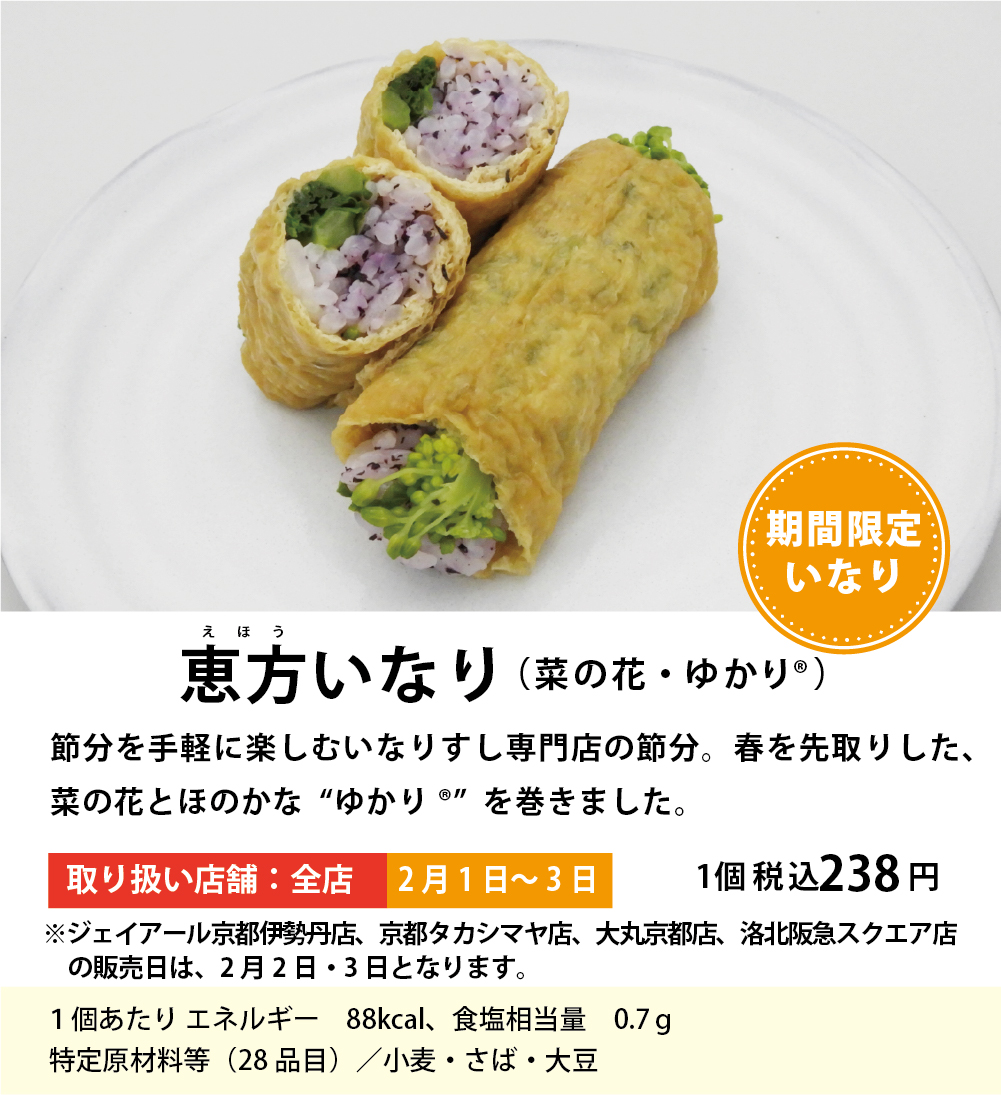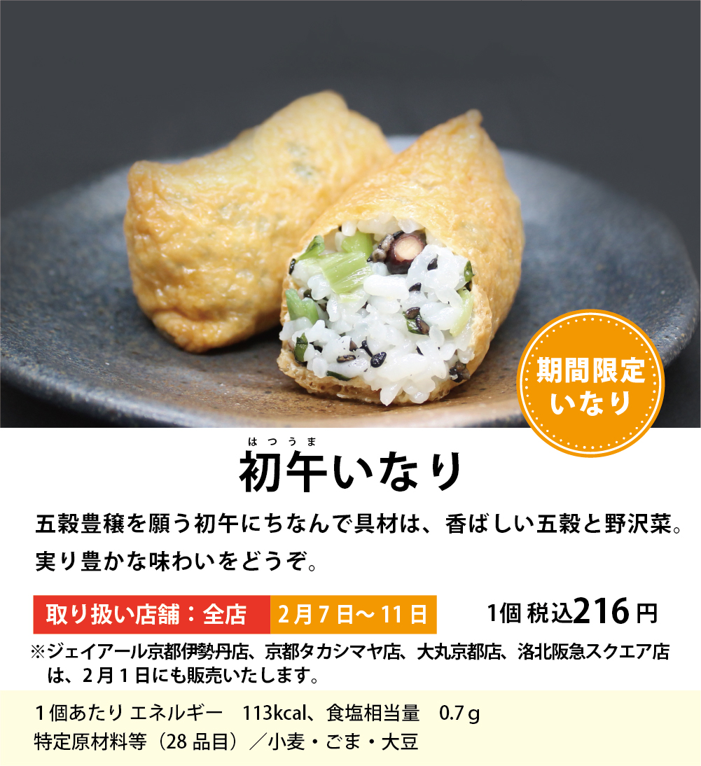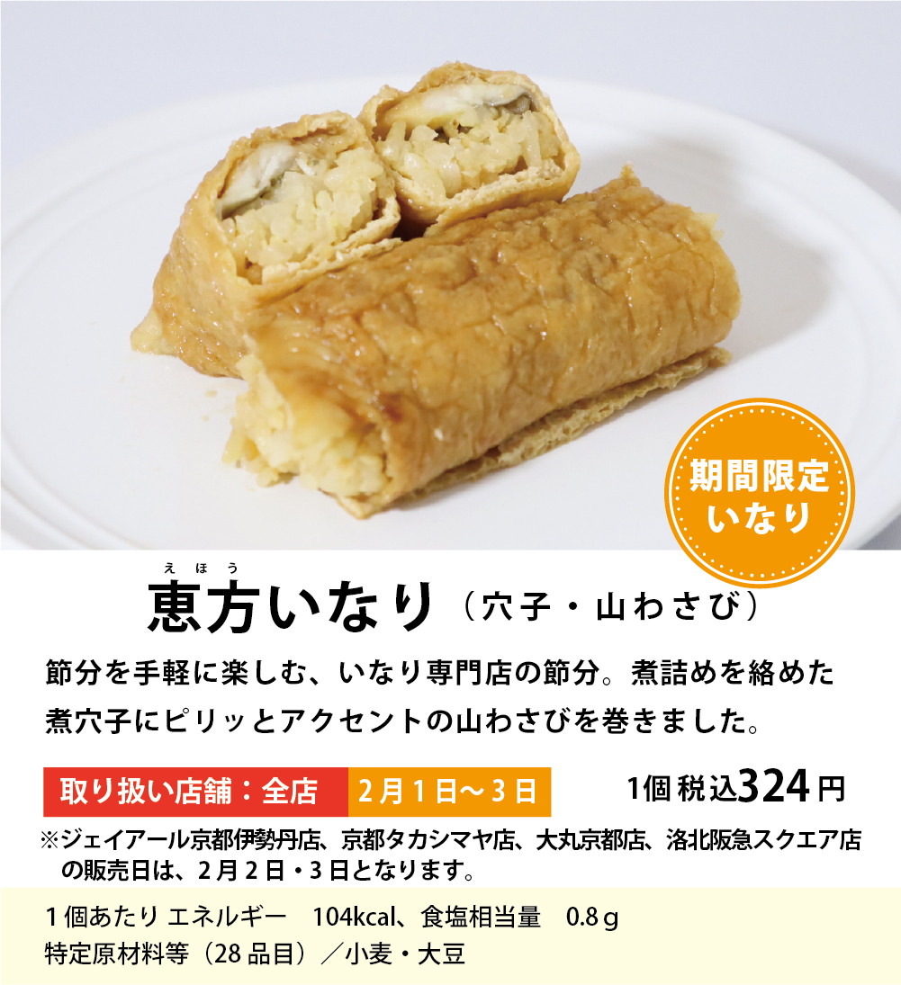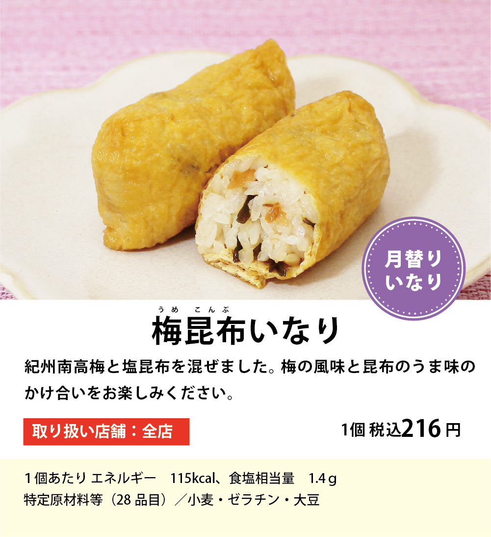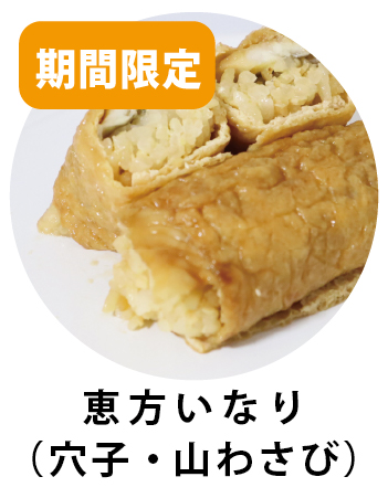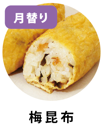 いなりすし専門店 豆狸 ひとつひとつ丁寧に「手」でつつみこむ それが豆狸のこだわりです 商品一覧 ※品切れや、取り扱いの有無が変更になる場合がございます 期間限定いなり 梅昆布いなり 紀州南高梅と塩昆布を混ぜました。梅の風味と昆布のうま味のかけ合いをお楽しみください。 ちりめん山椒いなり 噛むほどに広がるちりめんの旨みと、山椒のアクセントがよく合います。素朴な味わいのおいなりさんです。 初午いなり 五穀豊穣を願う初午にちなんで具材は、香ばしい五穀と野沢菜。実り豊かな味わいをどうぞ。 恵方いなり(柚子・金ごま) 節分を手軽に楽しむいなりすし専門店の節分。柚子と金ごまを合わせ、揚げを裏返して巻きました。 恵方いなり(菜の花・ゆかり®︎) 節分を手軽に楽しむいなりすし専門店の節分。春を先取りした菜の花とほのかな”ゆかり®︎”を巻きました。 恵方いなり(穴子・山わさび) 節分を手軽に楽しむいなりすし専門店の節分。煮詰めを絡めた煮穴子にピリッとアクセントの山わさびを巻きました。 豆狸 店舗一覧 >> 定番いなり 豆狸いなり 香り高い金胡麻に、椎茸、干瓢。ふっくら甘いお揚げで包みました。豆狸の代表商品です。 わさびいなり 上品な辛味のある花わさびと、お揚げのまろやかな甘みが良く合います。 生姜いなり 具材には「にんべん」自慢のかつお枯節だしで炊き上げた国産生姜煮、お揚げには国産生姜の果汁をお出汁につかいました。 五目いなり 歯ざわりの良いたけのこやれんこん、ごぼう、ひじきなど、たっぷりの具材を包みました。 黒豆狸いなり 国産の黒糖を使用し炊き上げたお揚げのコクが、味わい深い仕上がりです。 たこチビいなり たこ煮と紅生姜を、小ぶりでやわらかなお揚げで包みました。 くるみ味噌いなり 毎月17日いなりの日限定。くるみを、味噌とみりんで味つけし、 胡麻と合わせました。 程よい甘さと味噌の風味が絶品です。 こんにゃくいなり 毎月20日から26日限定。柚子入りの酢飯を、こんにゃくで包みました。ぷるっと爽やかな味わいです。 豆狸 店舗一覧 >> 店舗限定いなり 山わさびいなり くるみ味噌といなりと、こんにゃくいなりのみ、リード文に日にち足しました。北海道産の山わさびを使用しました。山わさびとちりめん山椒がアクセントになり、さわやかな辛さに仕上げました。 仙台味噌いなり みそ漬処「香の蔵」の仙台味噌で漬け込んだ胡瓜を合わせました。仙台味噌の豊かなコクが広がります。 鷹の爪大根煮いなり さっぱりとした大根漬けと鷹の爪を混ぜ合わせたおいなりさんに仕上げました。 穴子いなり たっぷりの穴子に、アクセントの柚子、椎茸、金ごま。お揚げは東京駅を思い浮かべるレンガ柄で 仕上げました。 まぐろ時雨煮いなり こだわりの釜炊き製法で炊き上げた「にんべん」まぐろそぼろふりかけと、まぐろの時雨煮を、赤レンガ柄のお揚げに包みました。 あさりいなり 旨みたっぷりのあさりの時雨煮に、枝豆、塩昆布をバランスよく合わせました。 パンダいなり 上野のお土産に最適な、パンダの焼き印を押したお揚げさんに、具材はたけのこと鶏そぼろ。老若男女食べやすく仕上げました。 ナポリタン風いなり 酢飯にトマトソース、コーン・パプリカを混ぜ合わせ、カットしたベーコンをトッピング。”洋風”と”いなり”のコラボです! 吟鰻いなり 鰻の蒲焼きと玉子焼きを盛付けた贅沢な一品です。手土産にもおすすめです。 ベビー梅しらすいなり 歯ざわりの良いカリカリ梅としらすの旨みがよく合う、梅しらすいなりが小ぶりなサイズで作りました。 志ば漬いなり 「土井志ば漬本舗」のしば漬けを2種類合わせました。程よい酸味と食感をお楽しみください。 チリメン山椒いなり 京都東山「はれま」の チリメン山椒を使用しました。京都のお土産におすすめです。 虎柄カツいなり インパクトのある虎柄のお揚げに、ボリュームのあるカツを盛り付けました。野球観戦やお土産にもおすすめです。 牛めしつの田 和牛いなり 甘みのある上品な口当たりの 国産牛肉煮をふんだんに盛り付けました。 そばめしいなり 細かく刻んだ焼きそばと酢飯を混ぜ合わせた、神戸発祥のB級グルメをおいなりさんにしました。神戸でそばめしに使用されている“ばらソース”を使用しています。 梅の実ひじきいなり 厳選した肉厚のひじきと歯ごたえのよい梅の実を使った、爽やかな風味の逸品である“太宰府十二堂えとや”の“梅の実ひじき”を使用しました。 豆狸 店舗一覧 >>